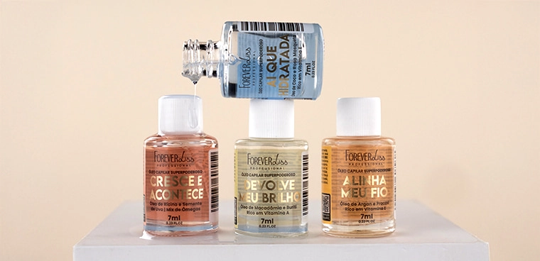 Experimente o Kit de mini óleos capilares da Forever Liss e tenha brilho, hidratação e maciez em todos os momentos do dia, porque o cuidado com seu cabelo merece estar sempre por perto!